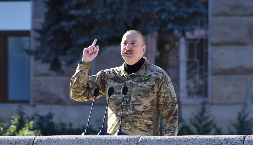 2019-cu ildə “Qarabağ Ermənistandır. Nöqtə” - deyən birisi var idi, hünəri çatır, cavab versin... Baş Komandan: “Dörd il bundan əvvəl Xankəndi şəhər stadionunda Ermənistanın baş naziri çıxış edərkən təkəbbürlə demişdi: “Qarabağ Ermənistandır və nöqtə”. Biz ona, onun kimilərinə və onların arxasında duranlara döyüş meydanında qan tökərək, şəhidlər verərək göstərdik ki, o, səhv yolda idi. Biz göstərdik ki, Qarabağ Azərbaycandır, döyüşərək, vuruşaraq, heç nəyə baxmayaraq və bu gün hər kəs bilməlidir ki, bizimlə bundan sonra heç kim zarafat etməsin”.