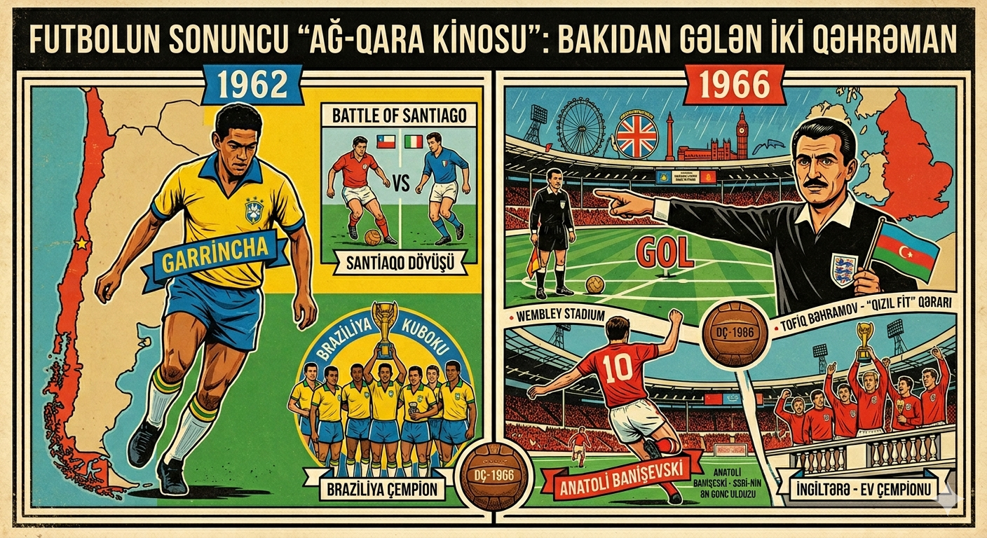 Bu gün dördüncü yazımızda futbolun hələ "rəngsiz" olduğu, amma emosiyaların ən yüksək rəngdə yaşandığı 1962-ci və ekranların rənglənməyə başladığı 1966-cı illər mundiallarına nəzər salacağıq.