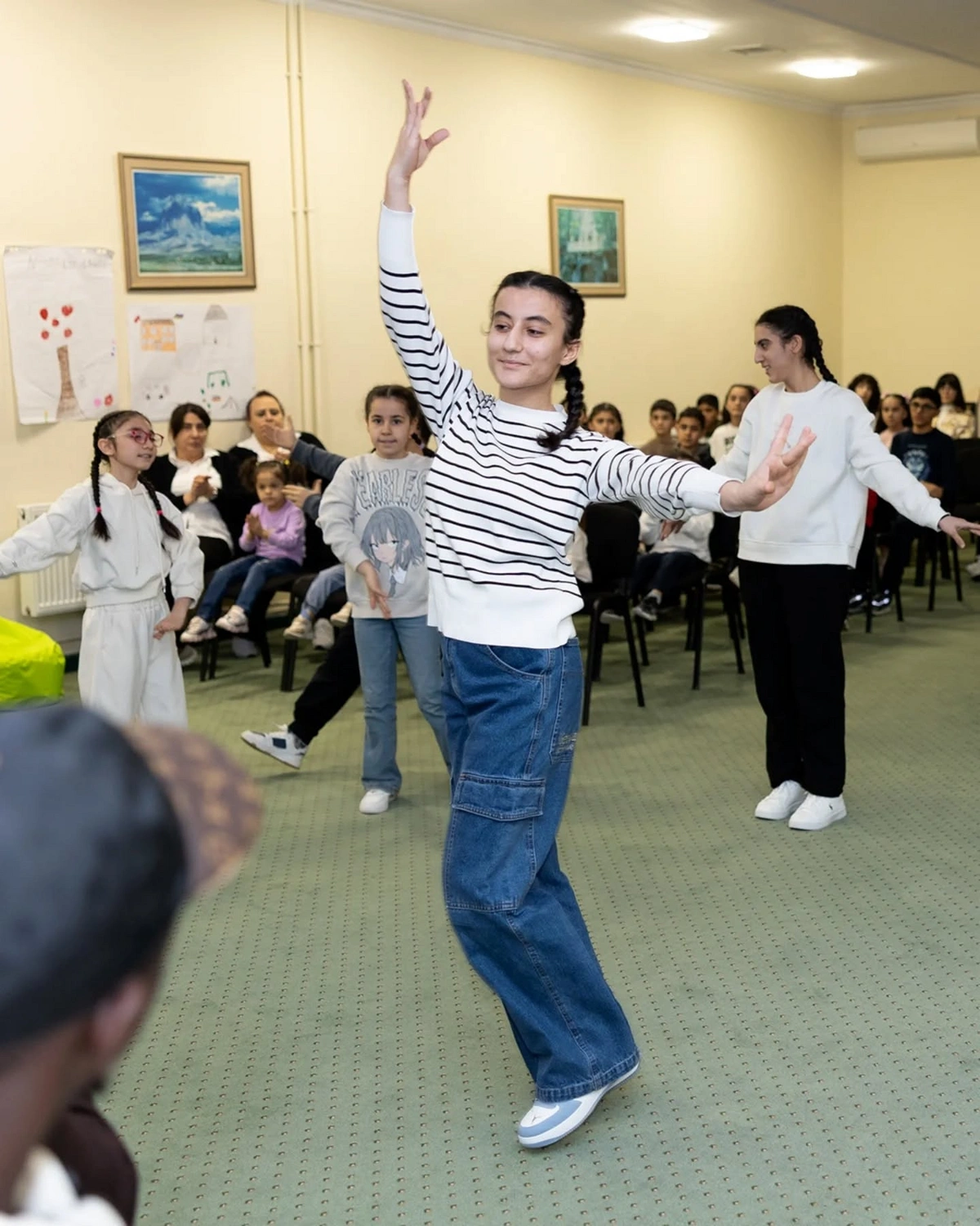 Görüş zamanı uşaqlar qonaqlar üçün hazırladıqları musiqi nömrələrini və müxtəlif rəqsləri nümayiş etdiriblər. Daha sonra futbolçular uşaqlarla əyləncəli oyunlar oynayıb, onları maraqlandıran sualları cavablandırıblar. Sonda uşaqlara müxtəlif hədiyyələr təqdim olunub.