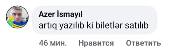 Oyuna böyük marağın olduğunu nəzərə alsaq, ən ucuz – 5 manatlıq biletlərin qısa zamanda satılacağı və ya saytın çökəcəyi əvvəldən ehtimal olunurdu ki, belə də oldu.