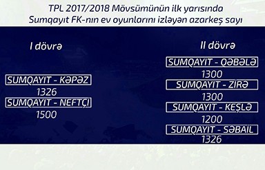 "Sumqayıt" bütün azarkeşlərə ilk iki dövrə ərzində komandanı tək buraxmadıqları üçün təşəkkür edib. "Kapital Bank Arena"da keçirilmiş 6 oyun üçün azarkeş sayı aşağıdakı kimidi: