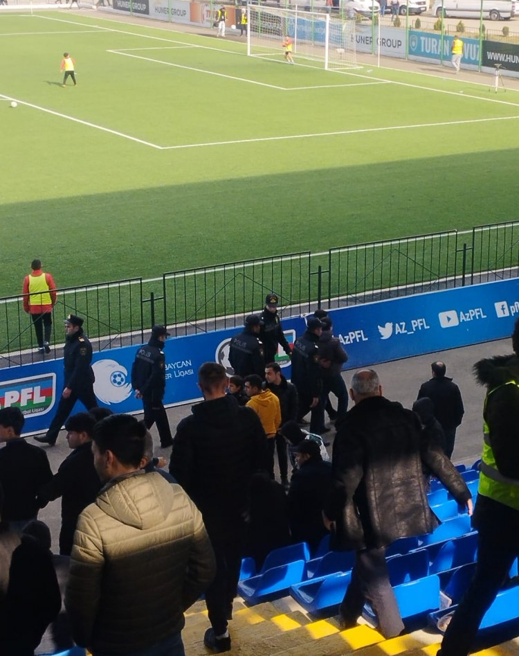 Qarşılıqlı söz atışmasından sonra hadisənin daha da böyüməməsi üçün polislər fanatı tribunadan kənarlaşdırıb.
