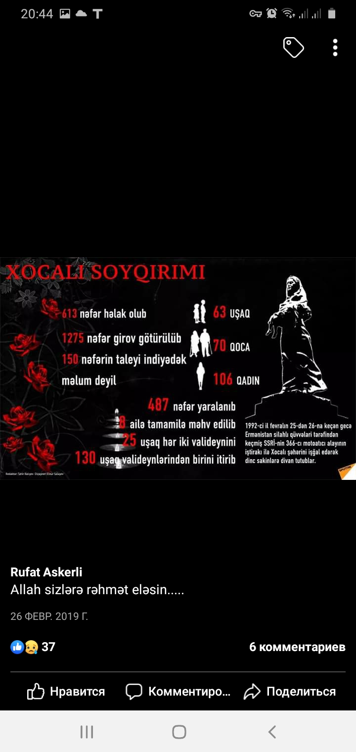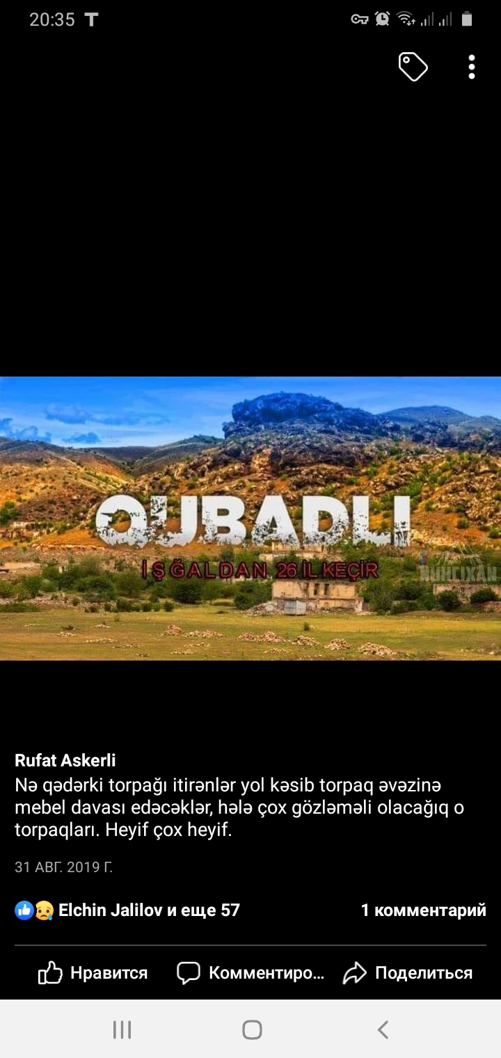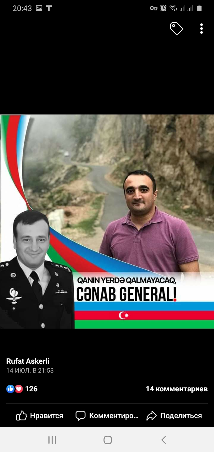 İnşallah, qəhrəman ordumuz tezliklə Qarabağa və işğal altında olan digər cənnət məkanlarımıza qovuşacaq. O zaman Rüfətin və digər şəhidlərimizin də ruhu şad olacaq! Allah rəhmət eləsin!".