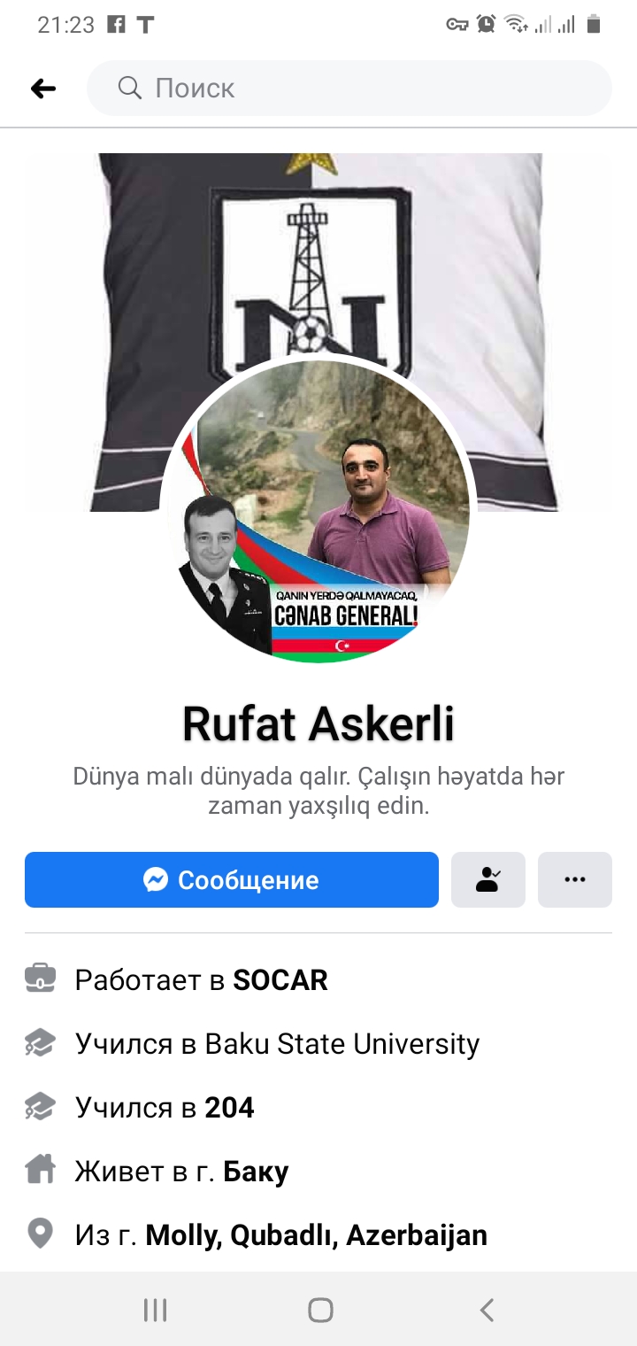 Virtual dostum olan, tez-tez "feysbuk"da mənə ürək sözlərini yazan Rüfət də belə dəyərli Azərbaycan oğullarından idi. "Dünya malı dünyada qalır, çalışın yaxşılıq edin" deyirdi Rüfət.