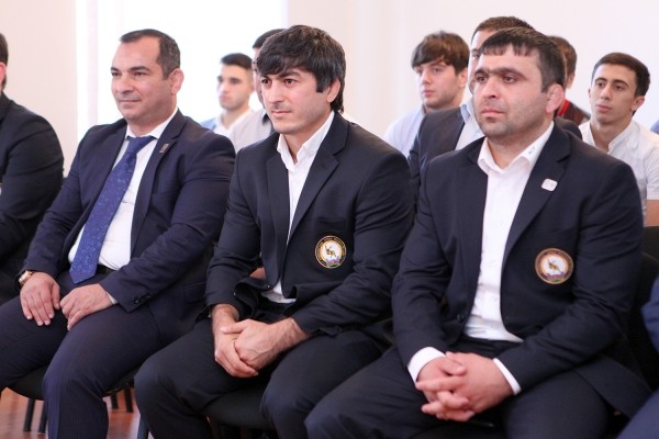 Sonra gənclərdən ibarət yığma komandamızın baş məşqçisi Elçin İsmayılov, Avropa çempionu Hidayət Heydərov çıxış edərək onlara göstərilən diqqət və qayğıya görə federasiya rəhbərliyinə təşəkkürlərini bildiriblər və oktyabr ayında Xorvatiyada keçiriləcək dünya çempionatında da uğurlu çıxışlarını davam etdirərək göstərilən etimadı doğruldacaqlarına söz veriblər.