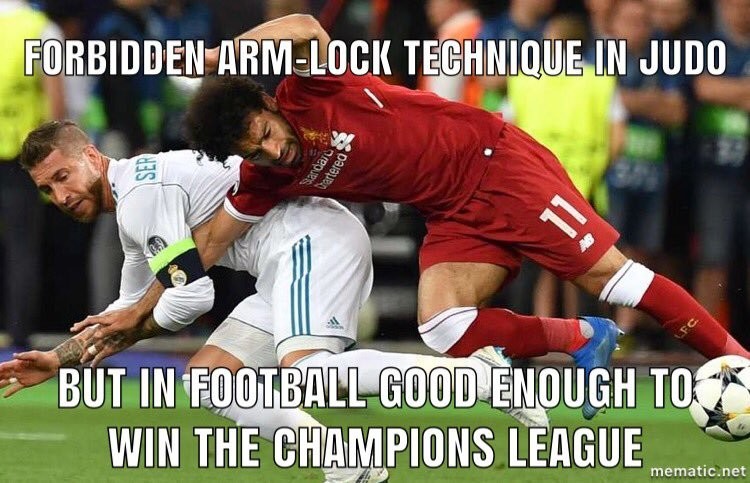 Sportinfo.az xəbər verir ki, EJU-nun rəsmi "Twitter" səhifəsi Ramosun misirli yarımmüdafiəçinin xəsarət almasına səbəb olan hərəkətini cüdoda qadağan olunmuş tutma fəndi adlandırıb.