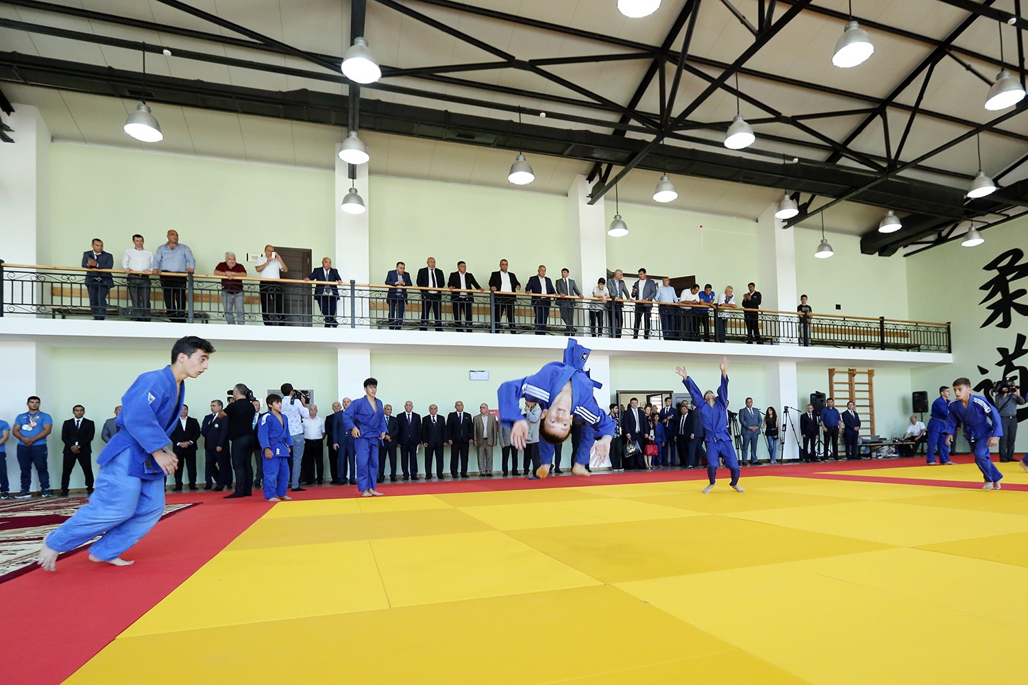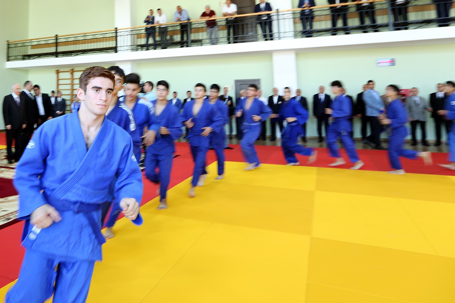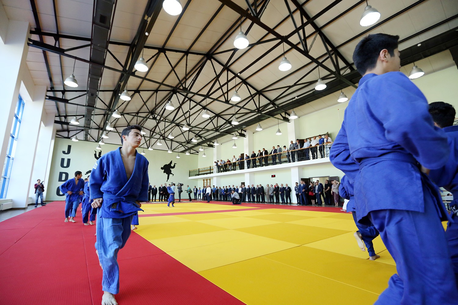 Qonaqlar tibb otağı, trenajor zalı, soyunub-geyinmə otaqları ilə tanışlıqdan sonra məşq zalına daxil olublar. Burada yeniyetmə cüdoçular məşq elementləri nümayiş etdiriblər.