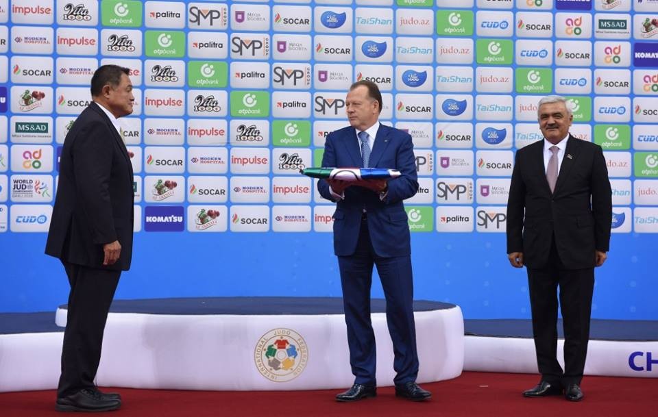Həlledici mərasimdə ACF-in prezidenti Rövnəq Abdullayev İJF bayrağını “gündoğar ölkə”dən olan həmkarı Yasuhiro Yasamhitaya təqdim etdi.