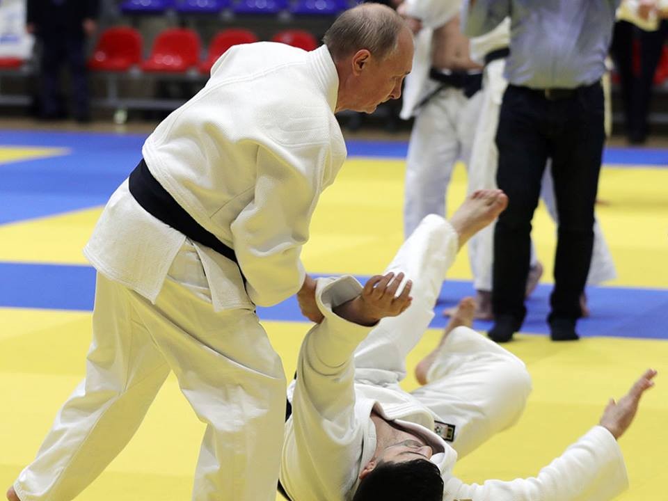 O, güləşçilər, boksçular və cüdoçularla söhbət edib. Bundan sonra Rusiya prezidenti özü də kimono geyinərək cüdoçularla məşq edib.