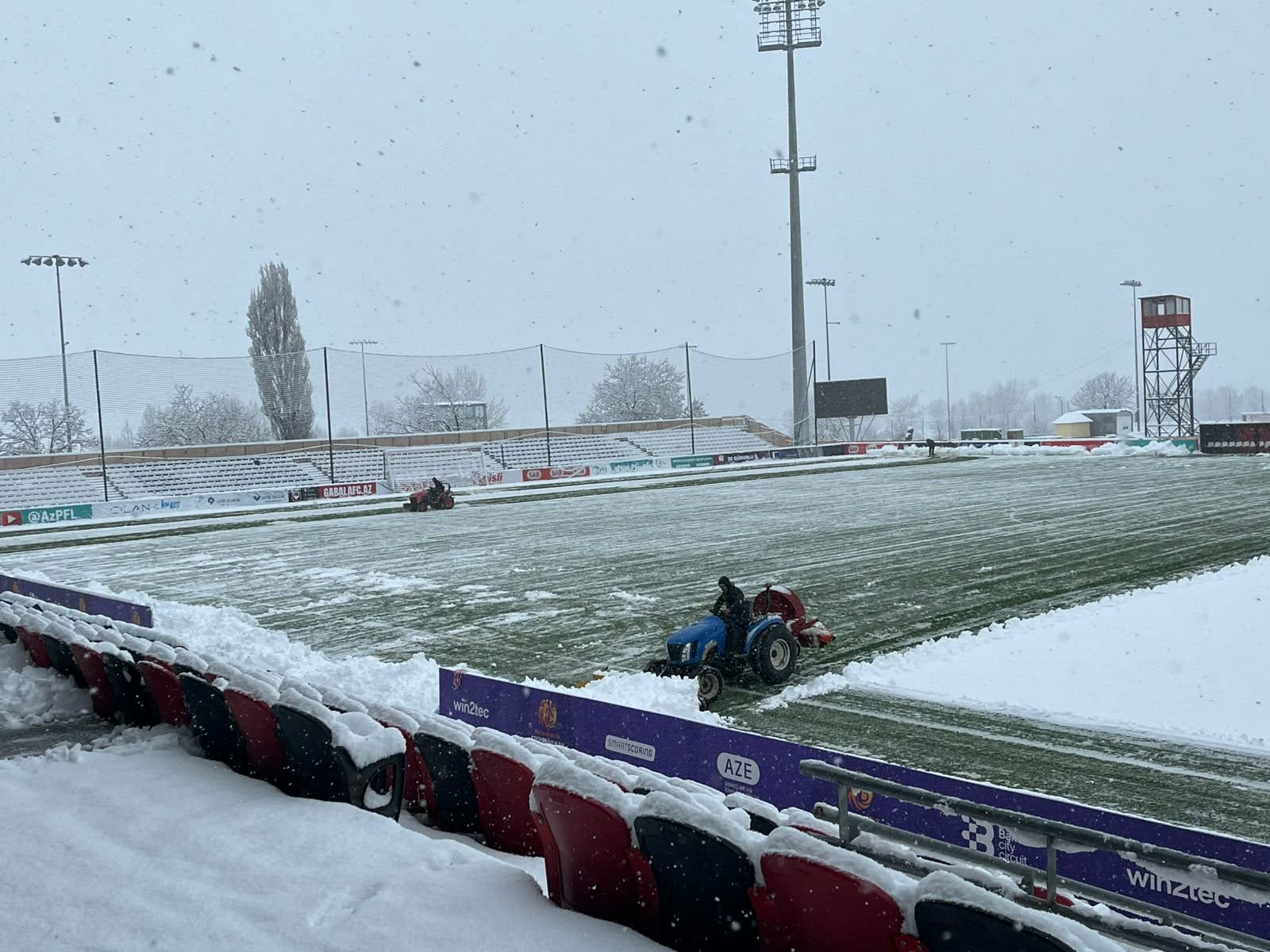 Hazırda meydan stadionun əməkdaşları və texniki vasitələr hesabına qardan təmizlənir.