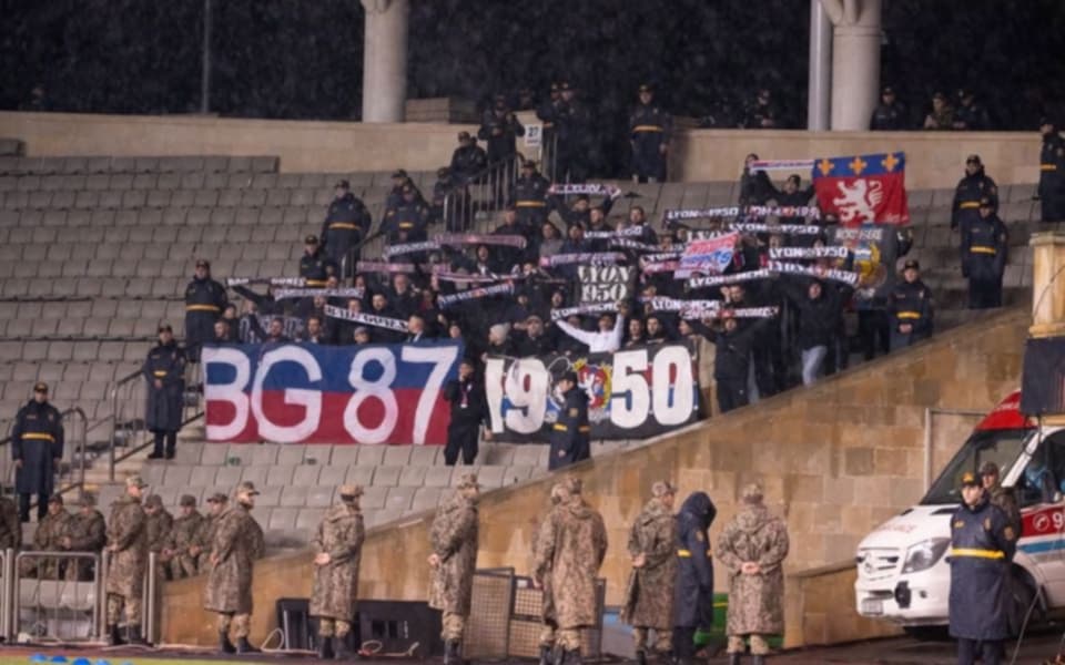 Qonaqlar üçün ayrılmış sektorda isə Fransadan gələn tərəfdarlar “qırmızı-göylər”i dəstəkləyirdi.