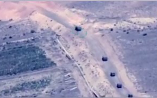 Kadrlarda uzun avtomobil və hərbi texnika karvanı, eləcə də hərçilər dəstəsi görünür.