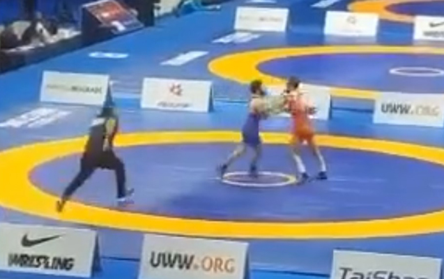 Güləş üzrə Azərbaycan millisinin üzvü Hacı Əliyev dünya çempionatının 1/4 finalında Ermənistan idmançısı Vazgen Tevanyanla üz-üzə gəlib.