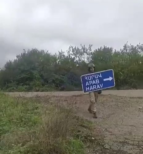 19-20 sentyabr tarixlərində ordumuzun keçirdiyi lokal antiterror tədbirlərindən sonra separatçılardan təmizlənən torpaqlarımızda əsgərlərimizin daha bir görüntüsü yayılıb. Belə ki, görüntülərdə əsgərlərimizin əlində olan lövhə diqqət çəkib.