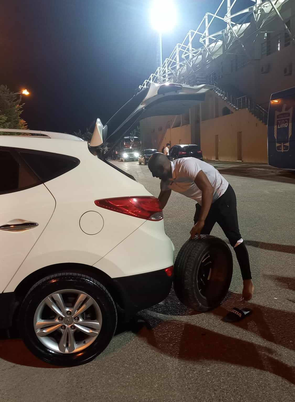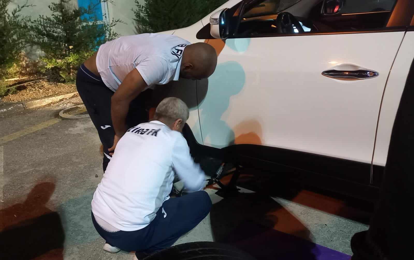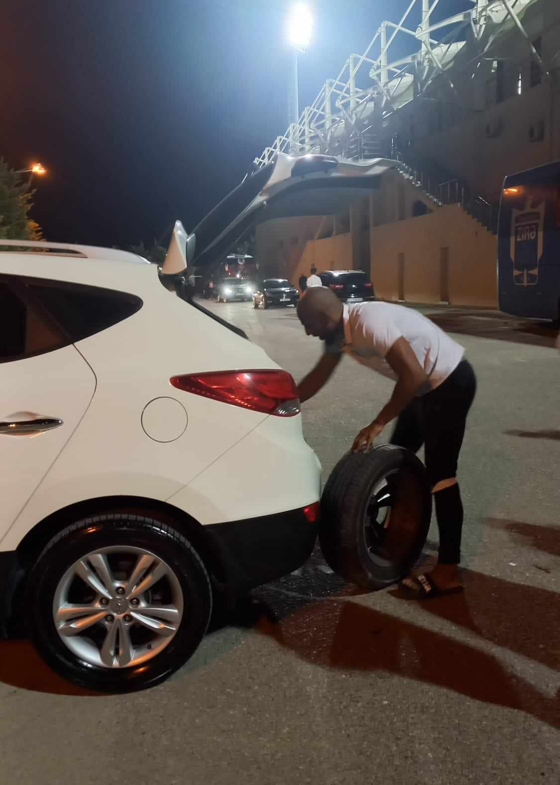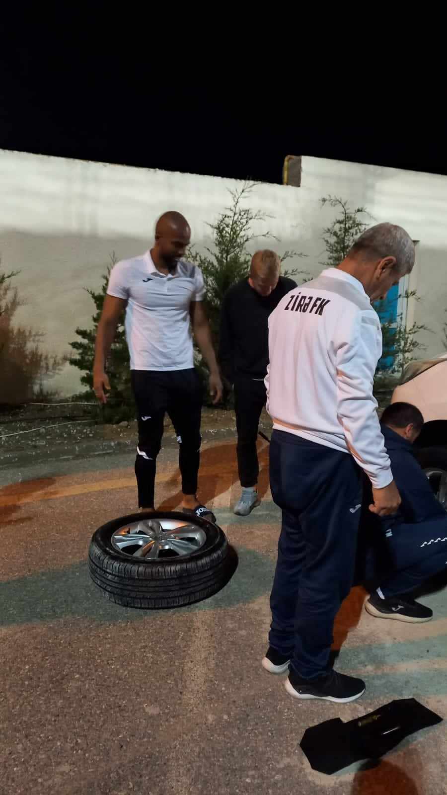 Öncə “Zirə”nin əsas komandasının sürücüsü, ardınca digər şəxs də “Hyundai” markalı avtomobilə yaxınlaşıb şini yeniləməkdə Ruana kömək etdi. Futbolçu ilə xanımı özlərinə qarşı bu dərəcədə isti münasibət görüb, sanki çaşıb qalmışdılar.