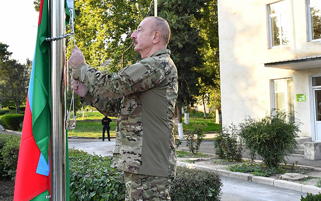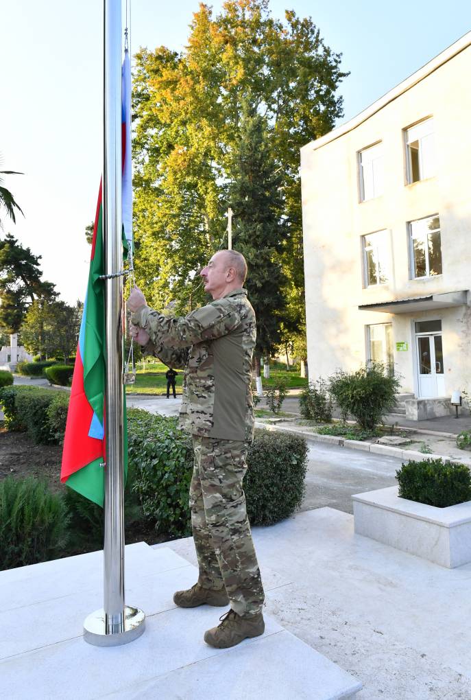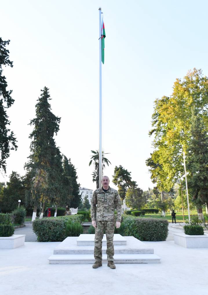 Azərbaycan Prezidenti İlham Əliyev oktyabrın 15-də Xocavənd şəhərində Azərbaycan Respublikasının Dövlət Bayrağını ucaldıb.