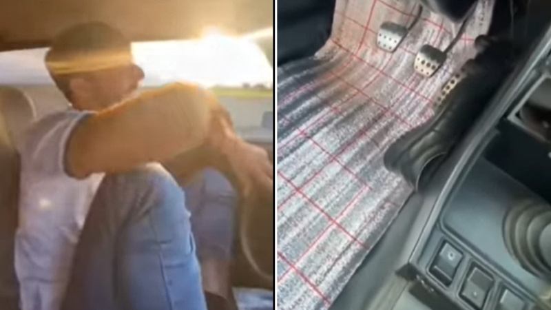 Onlardan biri ayağını pedaldan çəkərək yerinə idman ayaqqabısı qoyub və maşını bu formada idarə edib. Digəri isə əylənərək maşnı sürən gəncin həmin anlarını lentə alıb.