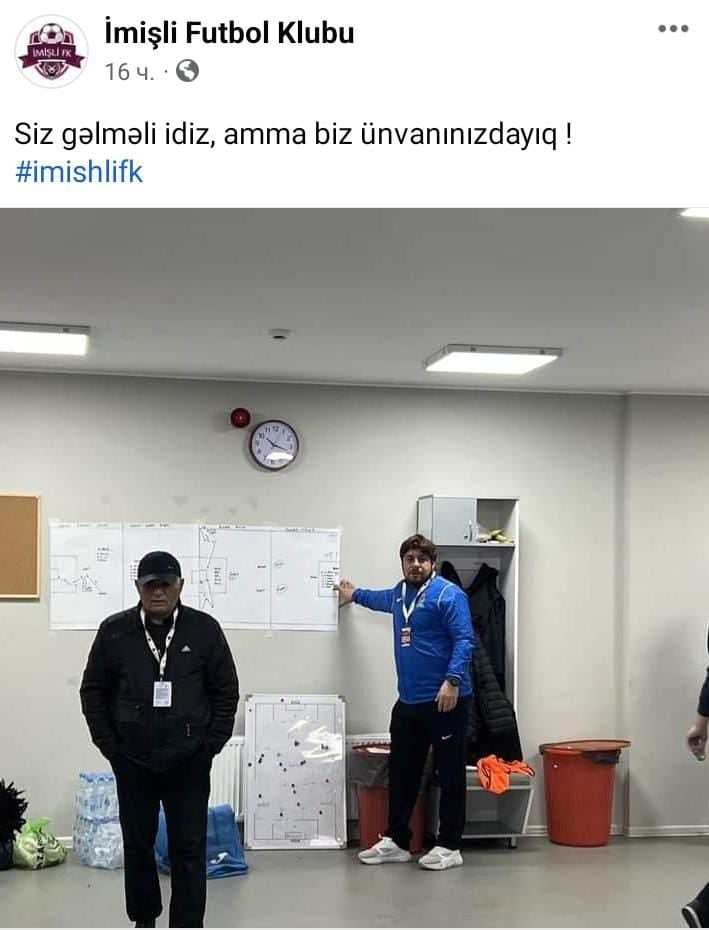 Bölgə təmsilçisi İmişli stadionunun paltardəyişmə otağından şəkil paylaşaraq, "siz gəlməli idiniz, amma biz ünvanınızdayıq!" yazıb.