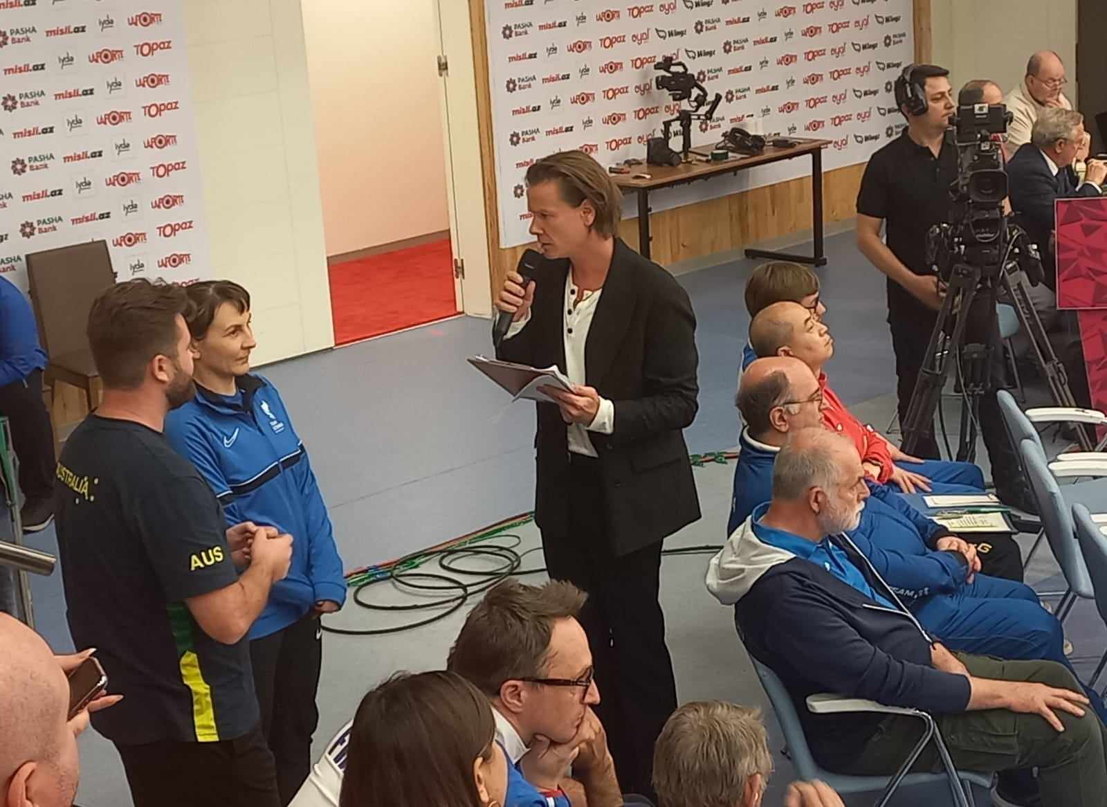 Suallarda Azərbaycanın təbliğatına xüsusi yer verilir. Məsələn, kişilər arasında 50 metr məsafəyə 3 mövqedən atəş açma növünün final mərhələsində yaranmış fasilə zamanı proqramın ingiltərəli aparıcısı səhnəyə iki azarkeşi dəvət edib. Estoniyadan olan xanımı və Avstraliyadan gəlmiş bəyi.