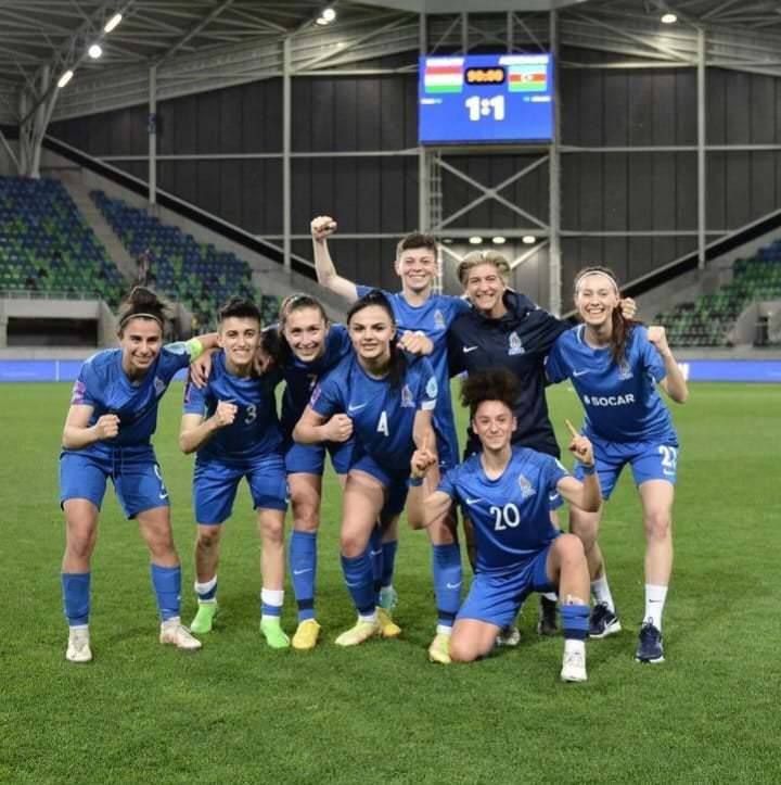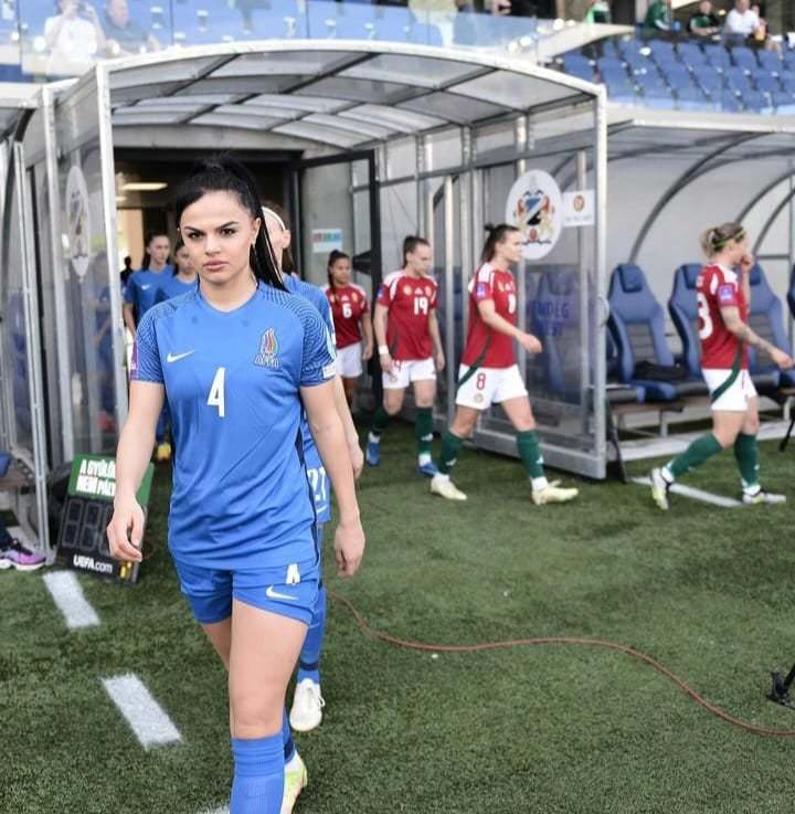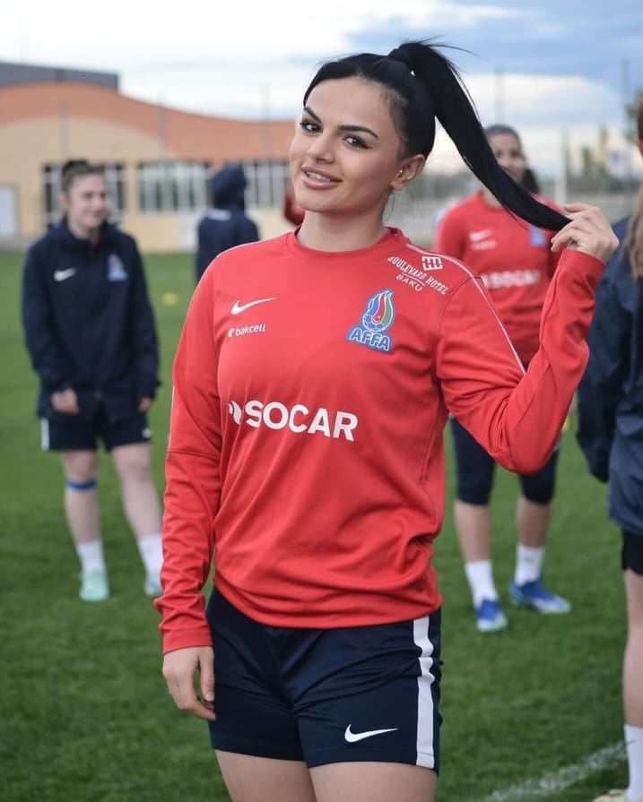 Qadınlardan ibarət Azərbaycan millisinin üzvü öz gözəlliyi ilə gözləri qamaşdırır.