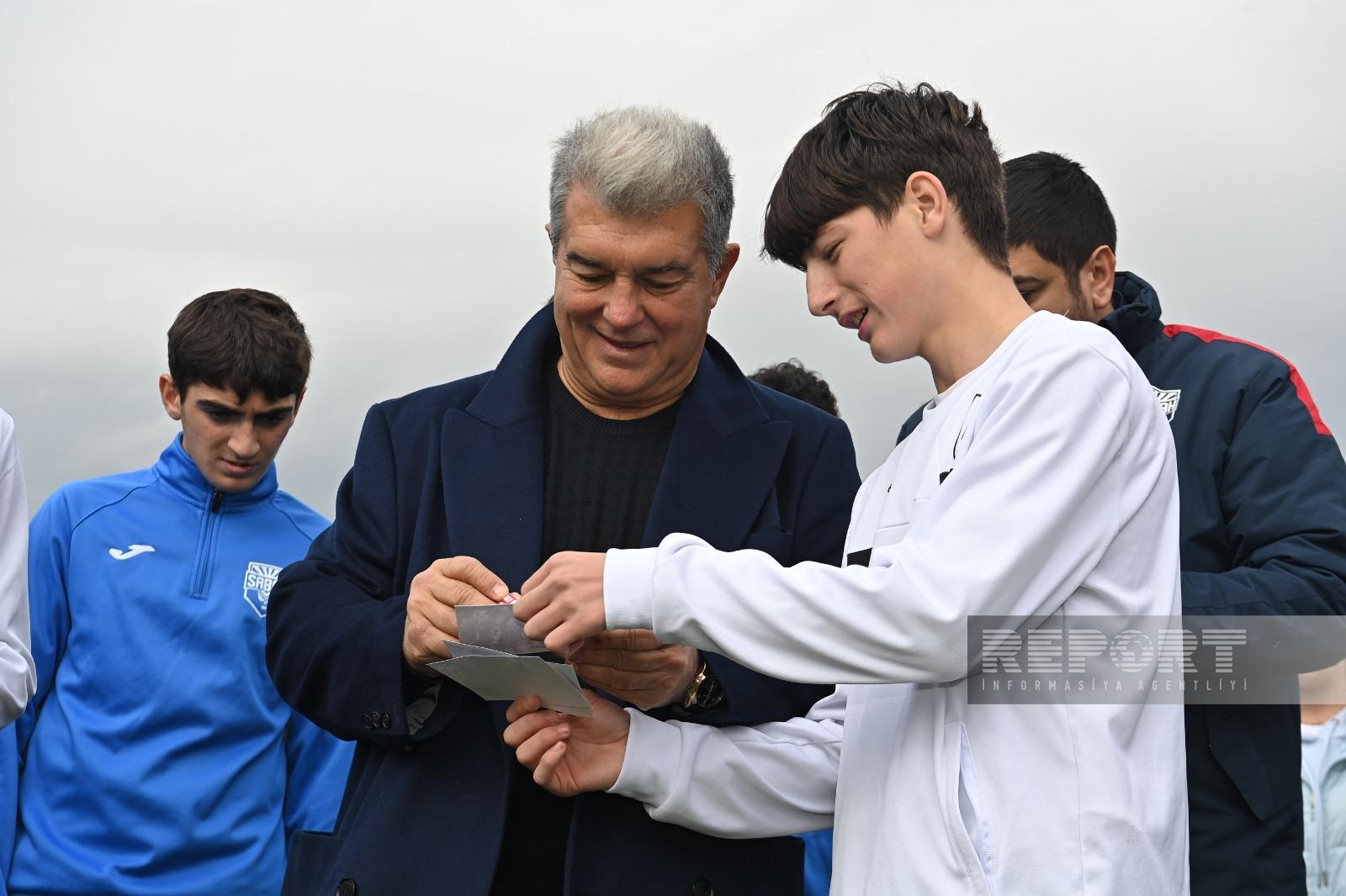 Bakıda səfərdə olan "Barselona"nın prezidenti Xuan Laporta Azərbaycan təmsilçilərinin aşağı yaş qruplarından ibarət komandaları ilə görüşüb.