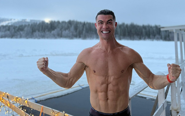 Ronaldonun qarlı havada buzlu suya girməsi izləyiciləri tərəfindən maraqla qarşılanıb.