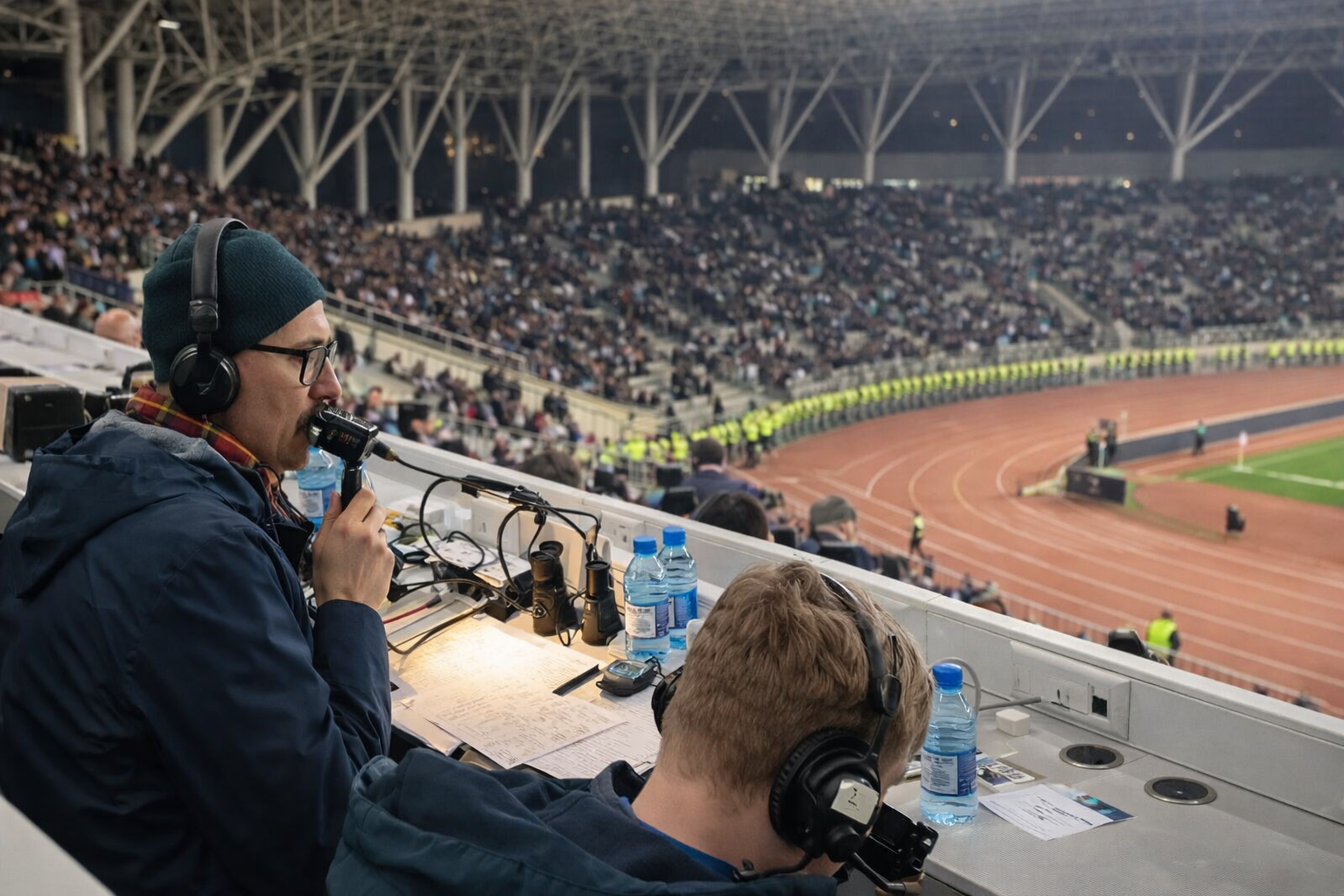 Sportinfo.az xəbər verir ki, kadrlarda şərhçilərin qeydləri elektron qurğularla deyil, əlyazma formasında apardıqları görünür.