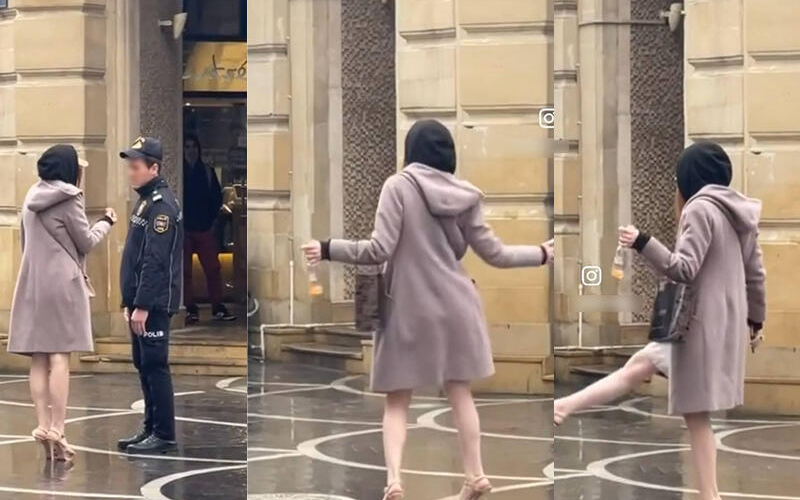 Bakının mərkəzində qızın əlində içki şüşəsi ilə rəqs etməsi diqqət çəkib.