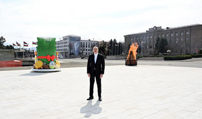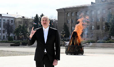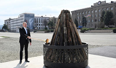 Prezident Xankəndidə Novruz tonqalını alovlandırdı -