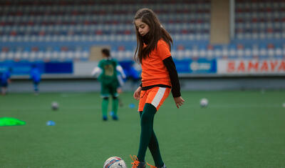 Eminin futbol meydançasında övladları ilə əyləncəli anları -