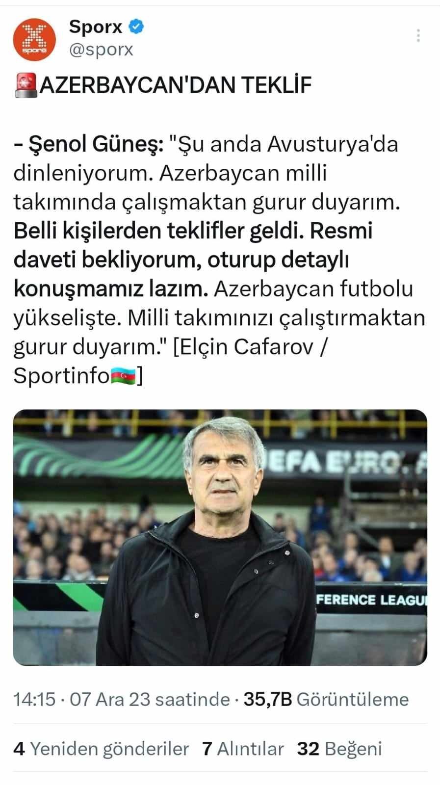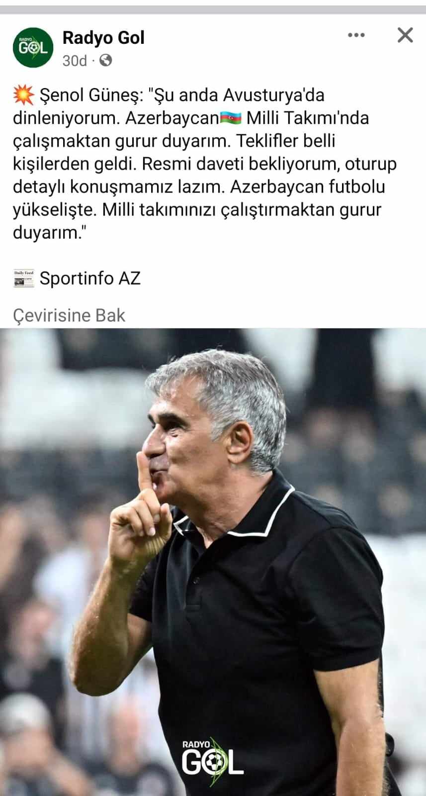 Türkiyə millisinin və «Beşiktaş»ın sabiq baş məşqçisi Şenol Günəşin Sportinfo.az-a verdiyi açıqlama böyük maraq doğurub.