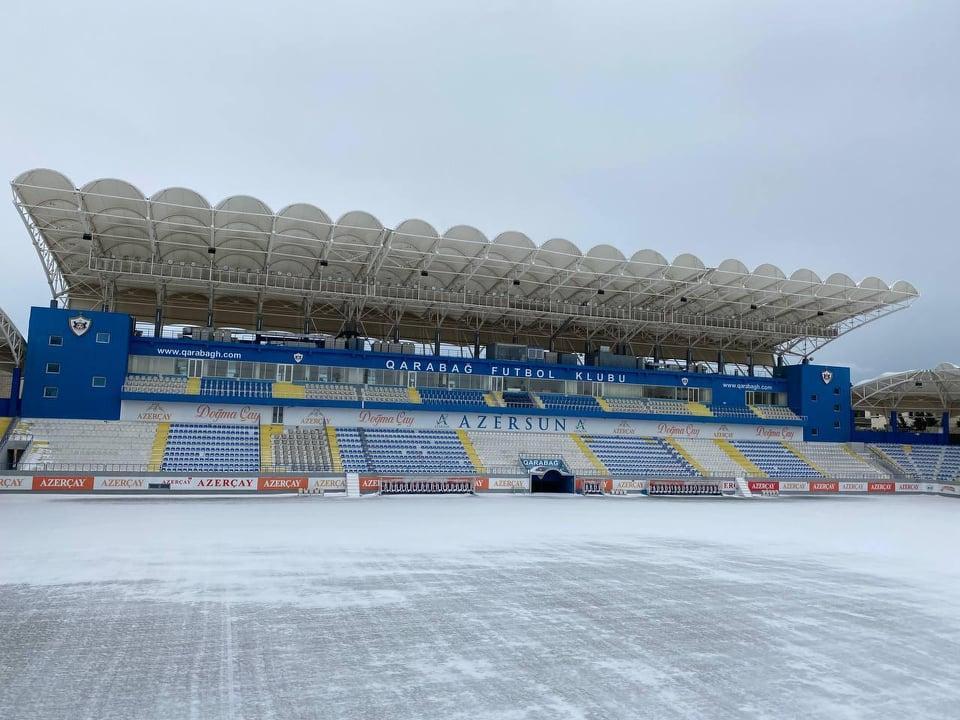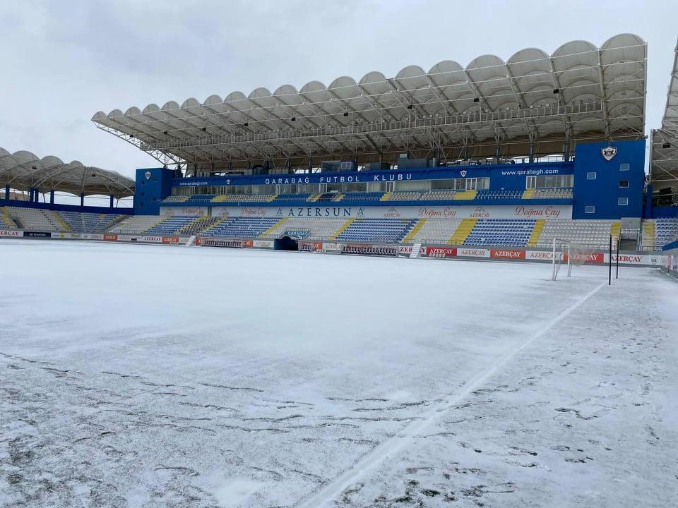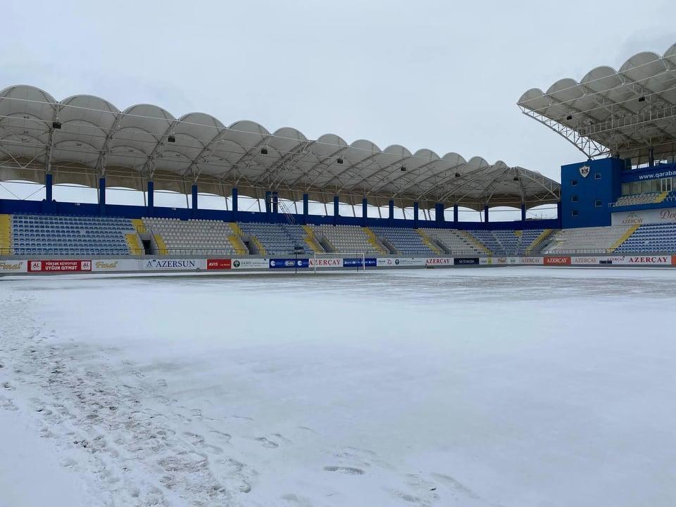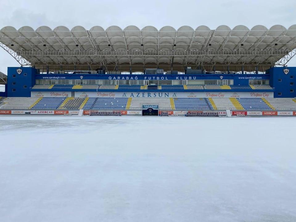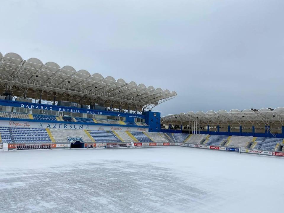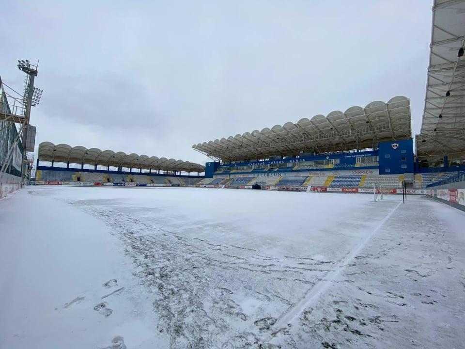 Bakıya yağan güclü qar "Qarabağ"ın ev oyunlarını keçirdiyi "Azərsun Arena"nı da ağ örpəyə bürüyüb.