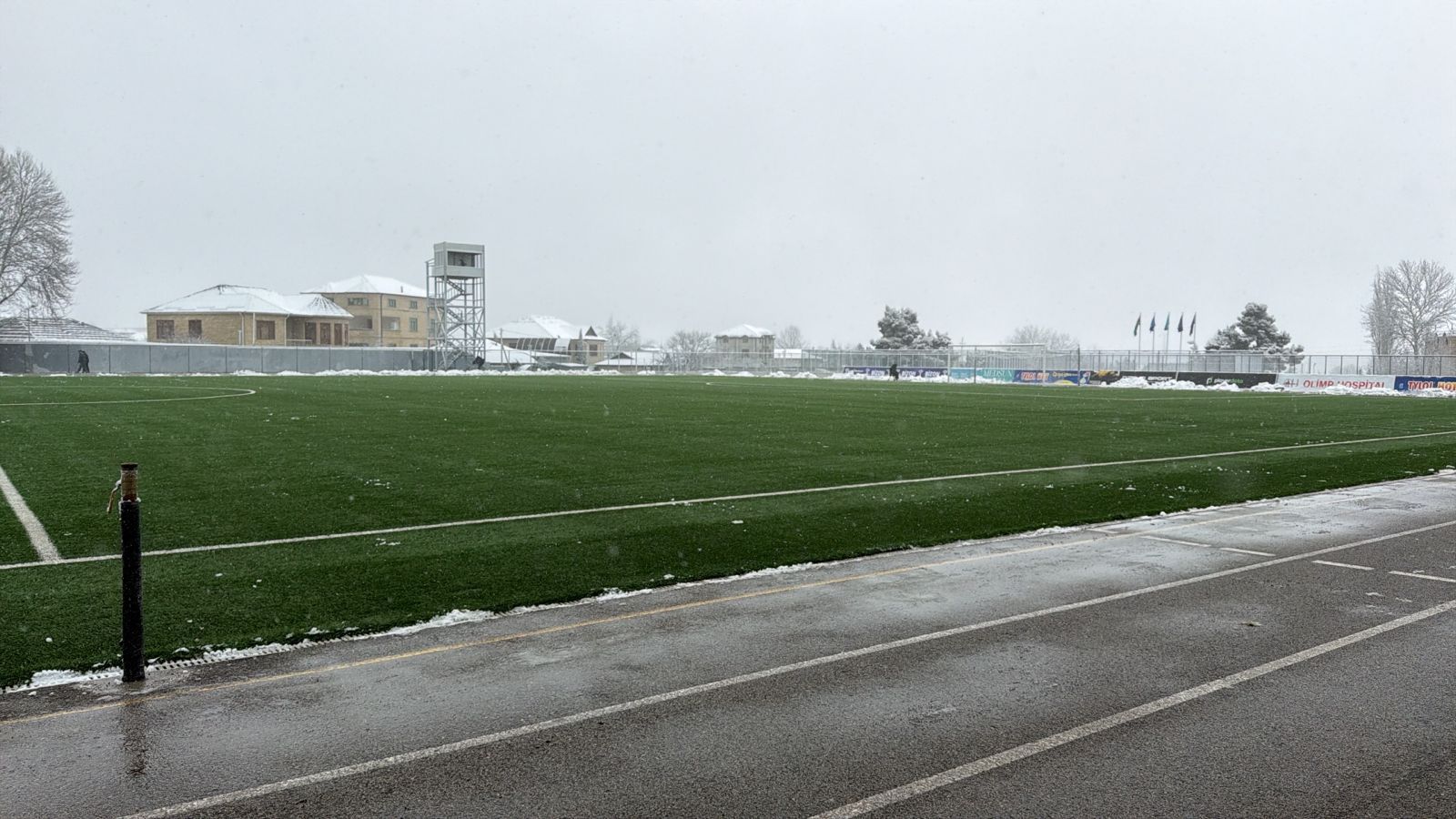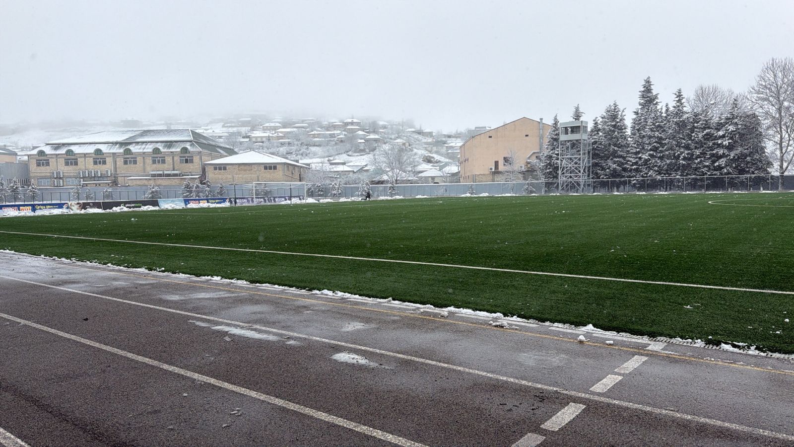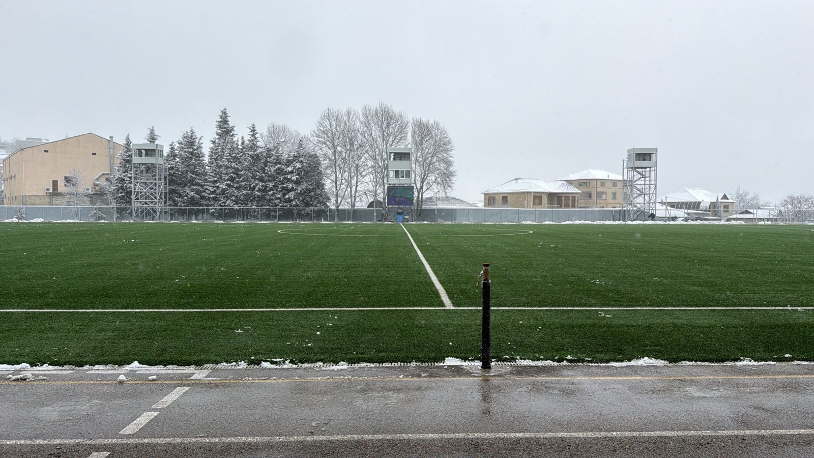 Şamaxıda qar yağmasına baxmayaraq, meydan xüsusi texnika və işçi qrupunun əməyi sayəsində təmizlənərək oyun üçün hazır vəziyyətə gətirilib.