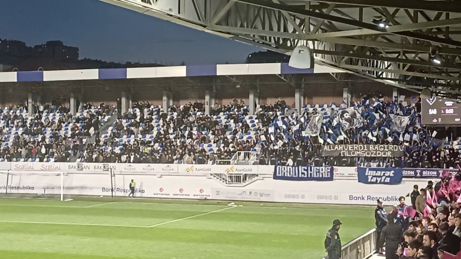 Azarkeşlər isə "Allahverdi Bağırov ölümsüzdür" yazılı plankart açmışdı.