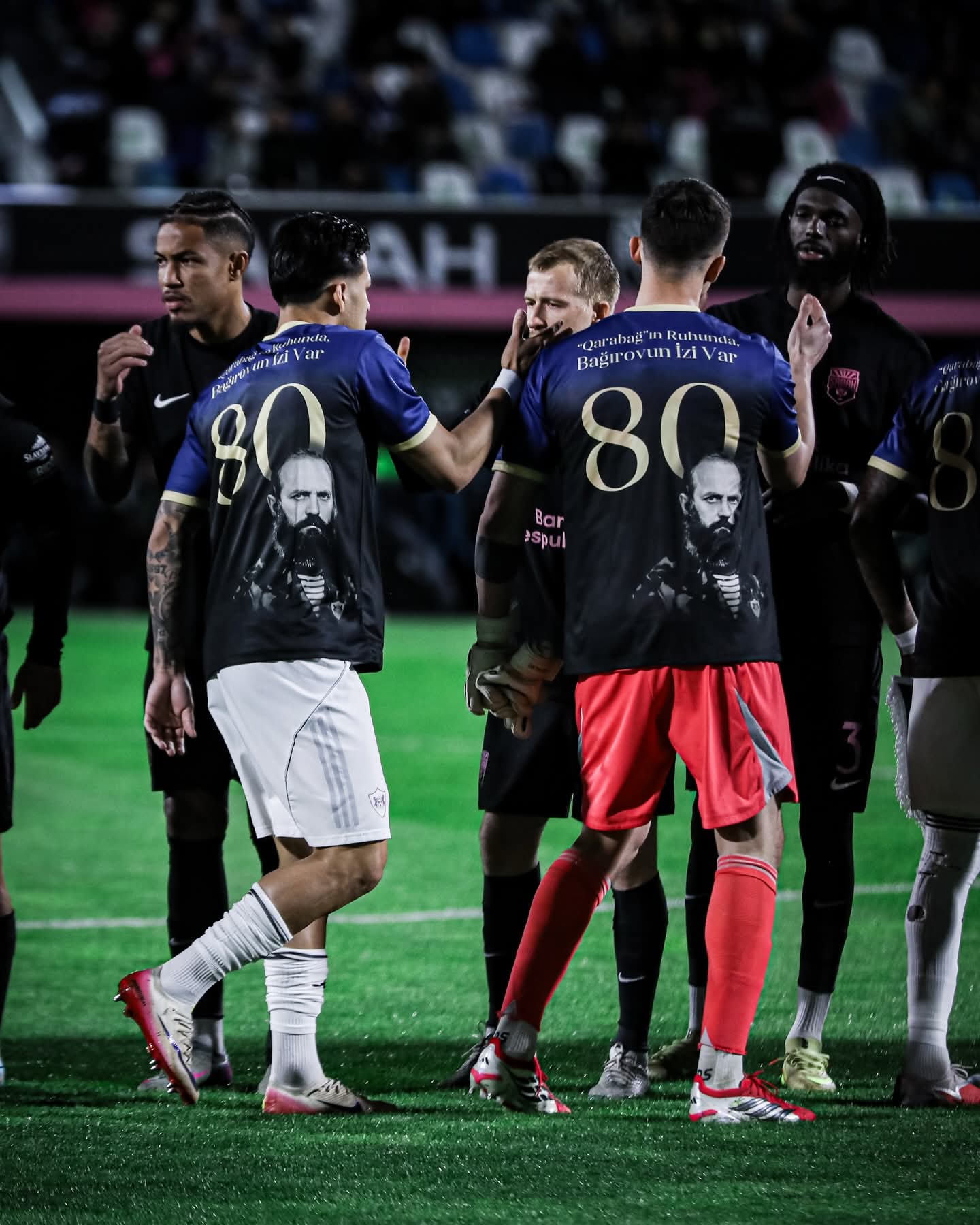 Futbolçular meydana üzərində "Qarabağ"ın ruhunda Bağırovun izi var" yazılı formada çıxdı.