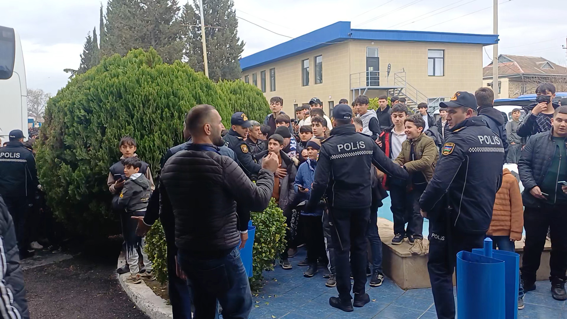 Çox sayda azarkeş komandanın avtobusunun ətrafına cəm olub.