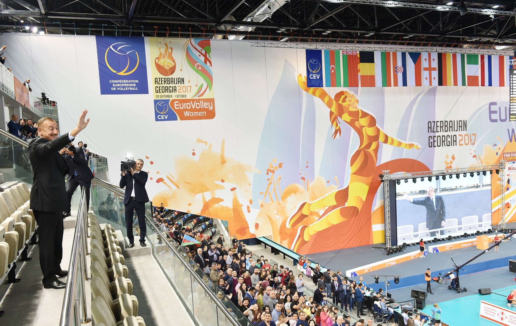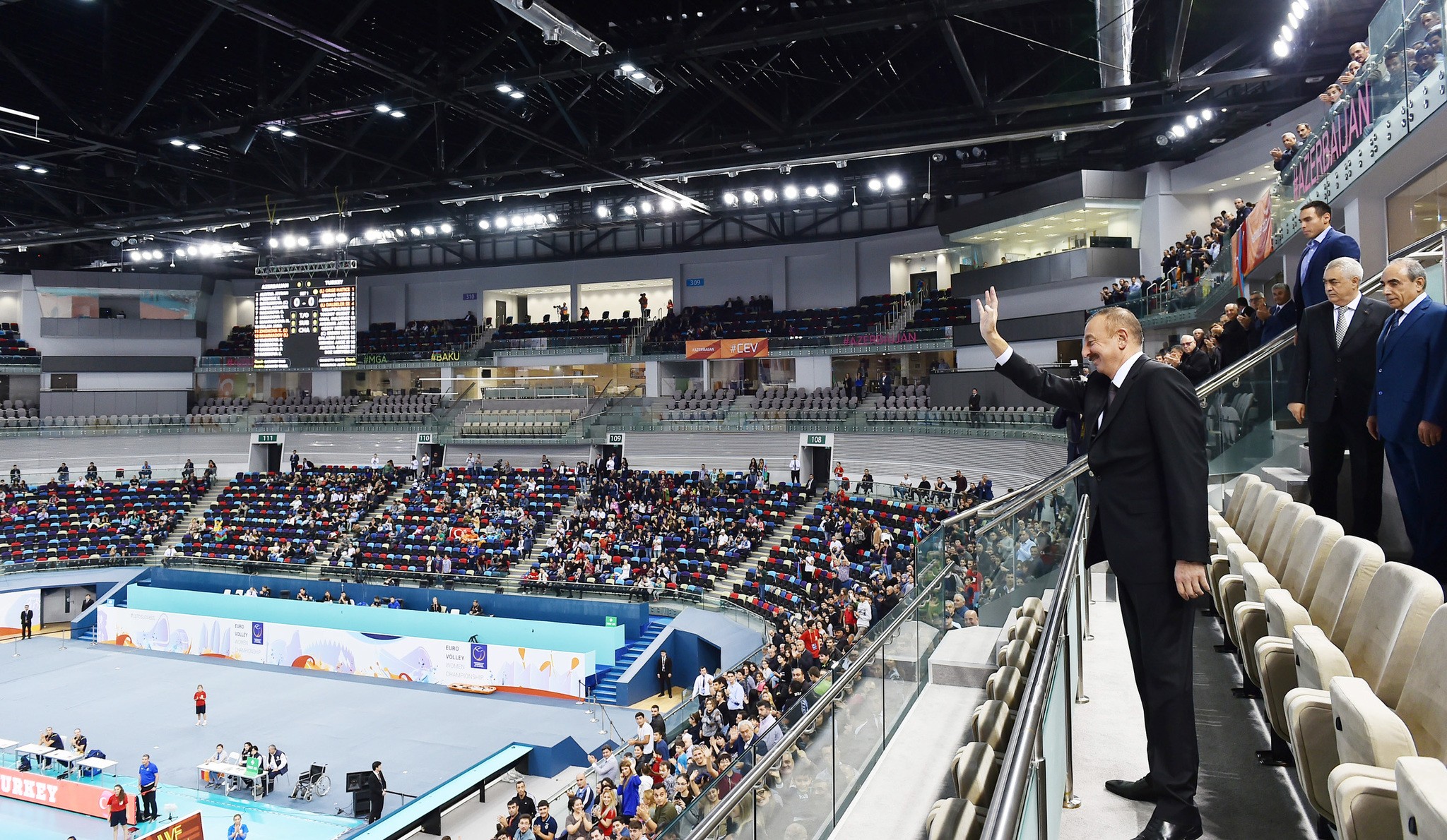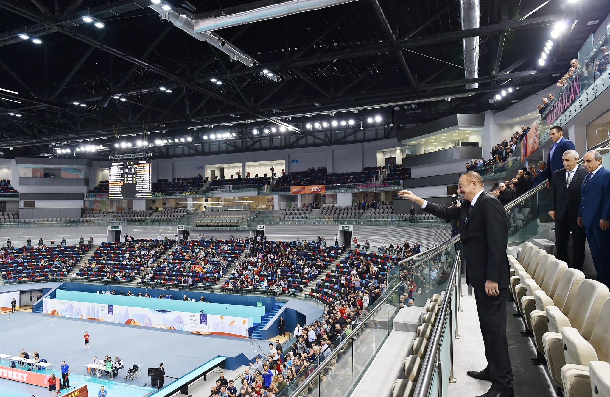Azərbaycan Respublikasının Prezidenti İlham Əliyev komandamızın oyununa baxıb. Maraqlı idman mübarizəsi şəraitində keçən matçın birinci setində üstün oyun nümayiş etdirən Azərbaycan millisi 25:22 hesabı ilə qalib gəlib.